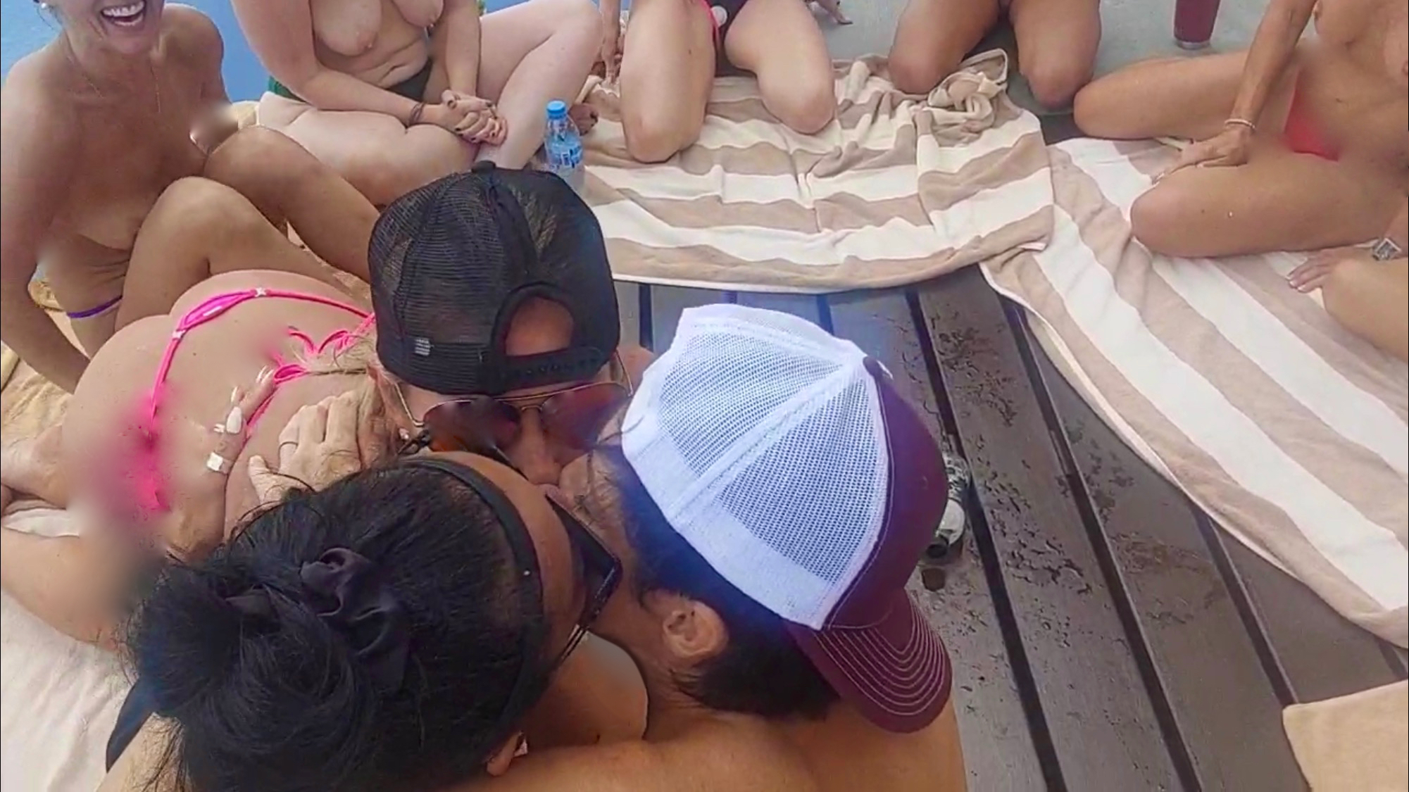 2. Lauren and the girl try casually going topless on a vanilla beach.