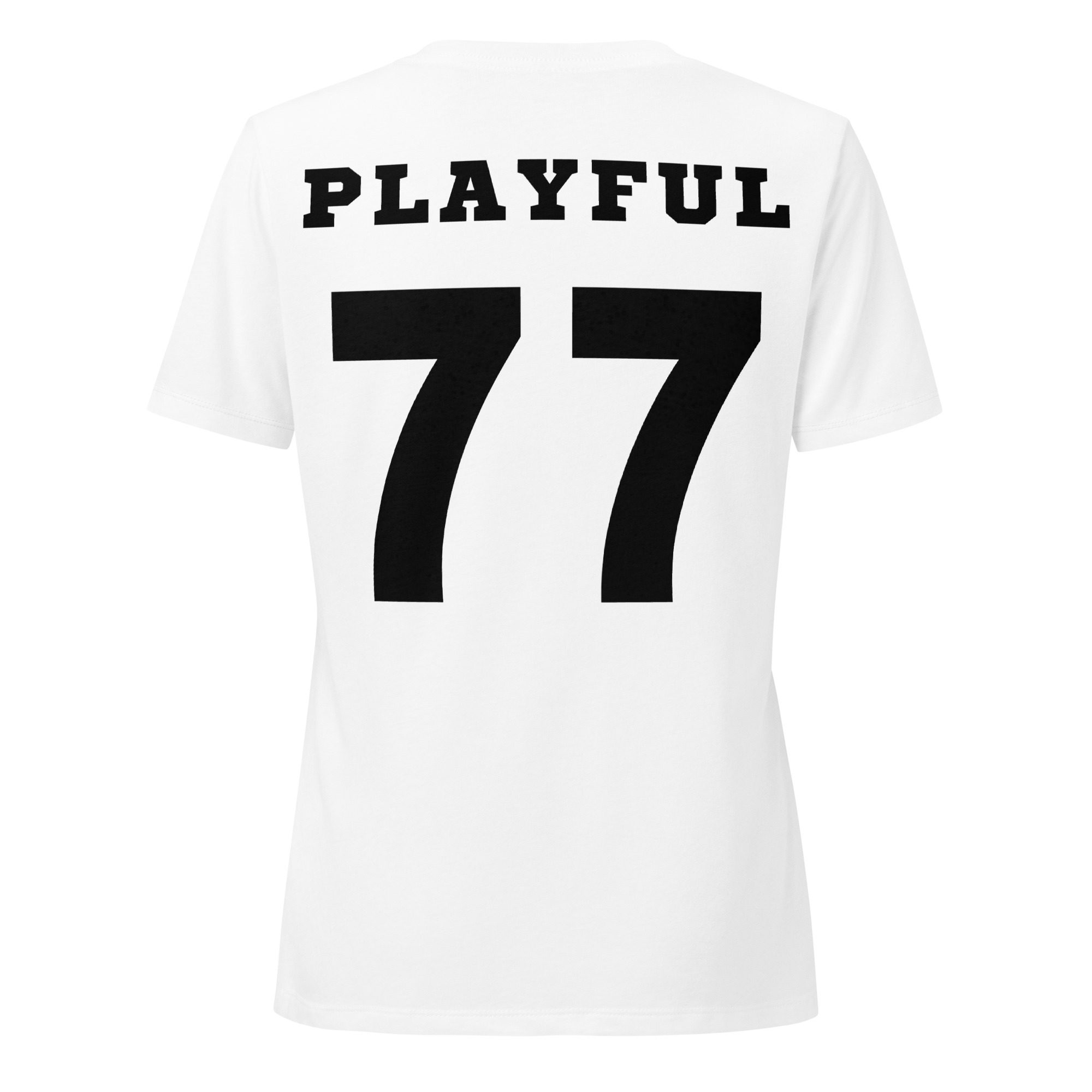 Tell them you’re playful! Represent the brand with this women’s cut, relaxed fit V-neck. Heather White with Black lettering.